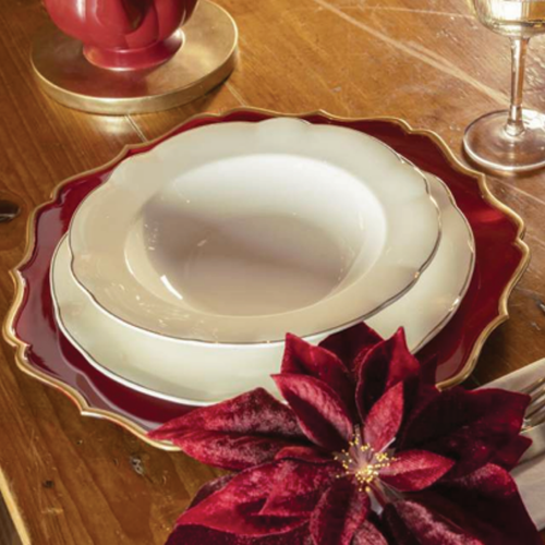 CONJUNTO 18 PEÇAS COM FIO DOURADO 279,65 € Desconto de %. Partilhar Comprar Contactar SKU: 242449M 6 pratos de jantar 6 pratos de sopa 6 pratos de sobremesa Conjunto que pode ir ao microondas e á maquina de lavar louça. Marca Tono Su Tono Tags decorhome decoritaliachristmasnatalmesahomedecortonosutono